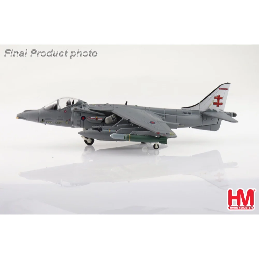 Harrier GR.9 RAF ZG478, 41 (R) Sqn., RAF Coningsby Air Base, March 2006 Hobby Master Scale 1/72 HA2651 BAe Harrier GR.Mk 9 Length 7.75" Width 5 Die-cast metal. Superb detailing in 1/72 scale. Pre-painted with pad applied markings. Fully assembled. Weapons that are not permanently attached. Comes with crew figure. Display stand included. Option to display model with wheels up or down. Minimum use of plastic. 1 Sqn disbandment scheme "ZG477" The GR.9 Harrier came into service in October 2006 and is a very updated improvement on the GR.7. The GR.9 is capable of a wider range of advanced precision weaponry, new communications along with upgraded airframes.